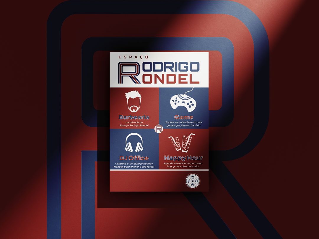 O projeto de marca para o Espaço Rodrigo Rondel chegou ao estúdio com um desafio: criar uma identidade única, integrando quatro segmentos. O processo criativo teve como base o objetivo de comunicar, aos clientes do Rodrigo, os serviços que o espaço oferece. Estava fora de cogitação criar quatro variações da identidade inspiradas em cada segmento, pois isso não unificaria a comunicação com a estratégia e a objetividade necessárias.